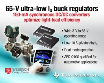TI 코리아(대표이사 켄트 전)는 업계에서 가장 낮은 10.5uA 정지 전류(IQ)의 65V, 150mA 동기식 DC/DC 벅 컨버터 2종을 출시한다고 밝혔다. 이들 신제품은 고효율을 요구하는 공장 자동화 및 오토모티브 센서 애플리케이션에 적합하다. 산업용 LM5..