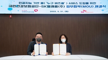 SK텔레콤은 31일 14시, 원주 건강보험공단 본부에서 국민건강보험공단과 ‘인공지능 기반 누구 비즈콜 도입을 위한 업무협약’을 체결했다.