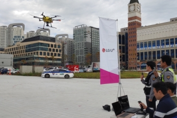 LG유플러스가 배곧신도시에서 AI 음성인식과 실시간 FHD 영상 전송 기술을 탑재한 5G U+스마트드론을 공개 시연했다. 시흥경찰서 관계자는 시연에서 최대 고도 50m, 시속 36km로 이동하는 드론을 스마트폰 앱 음성명령으로 제어했다. 드론의 카메라를 통한 고화질 실시간 영상 전송 기술도 공개됐다. 5G 기반 조이스틱으로 카메라를 좌우상하로 실시간 조작하..