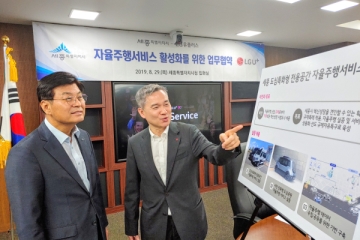 지난 7월, LG유플러스와 세종특별자치시는 부산 해운대에서 문재인 대통령이 주재한 규제자유특구 시도지사 간담회에 참석해 자율주행의 안정성을 높여줄 5G 기술과 자율주행 사업 실증 계획 등을 공개했다. 세종시는 이날 행사에서 규제자유특구로 선정돼 2021년까지 LG유플러스와 자율주행특화도시 조성 사업을 추진하고 있다. 양측은 8월 29일, 세종시청에 모여 자..