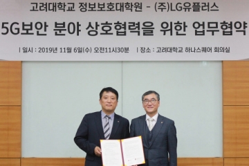 LG 유플러스가 5G 네트워크 보안 안전성 확보를 위해 11월 6일 고려대학교 정보보호대학원과 5G 보안 분야 상호협력을 위한 업무협약을 체결했다. 협약에 따라 LG 유플러스와 고려대 정보보호대학원은 MEC, 네트워크 슬라이싱 등 SA 기반 기술 연구에 주력한다.