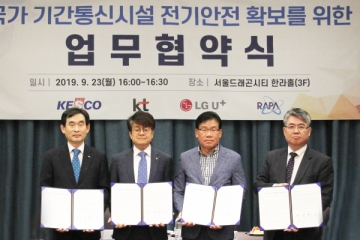 한국전기안전공사, 한국전파진흥협회, KT, LG유플러스가 국가 기간통신시설 전기안전 확보를 위한 업무협약을 체결했다. 이번 협약은 5G 시대를 맞아 통신재난 예방을 위한 국가 기간통신시설 전기 설비에 대한 안정성을 확보하기 위해 진행됐다. 4사는 국가 기간통신시설의 전기재해 예방을 위한 협력관계를 강화하고 국가 기간통신시설의 전기 안전 확보를 위한 활동을 ..