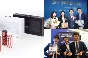 [2018년 9월 셋째 주 수상 소식] LG유플러스가 20일, 한국거래소 국제회의장에서 진행된 한국IR협의회 주관 ‘2018 한국 IR 대상’에서 유가증권시장 기업 부문 우수상을 수상했다. 전날, 삼성전자는 미국 뉴올리언스에서 열린 국제 디자인 공모전 IDEA 2018에서 총 9개 상을 거머쥐었다. 그리고 KT 역시 같은 날, 싱가포르에서 진행된 TechX..