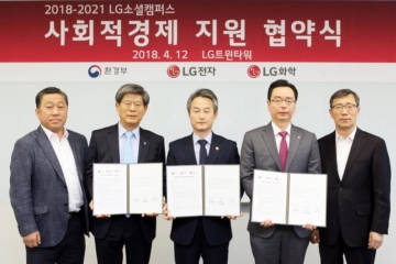 LG전자와 LG화학이 친환경 사회적경제 활성화에 앞장선다. 양사와 환경부는 서울 여의도 LG트윈타워에서 친환경 분야 사회적경제를 활성화하기 위한 협약(MOU)을 체결했다. 이 자리에는 환경부 안병옥 차관, LG전자 이충학 부사장, LG전자 배상호 노조위원장, LG화학 박준성 상무, 한국사회적기업진흥원 김종각 기획관리본부장 등이 참석했다.