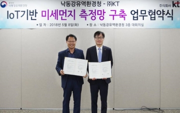 KT는 낙동강유역환경청과 울산지역 산업단지의 미세먼지 측정 및 대응을 위한 ‘미세먼지 환경개선 업무협약’을 체결했다고 밝혔다. 이 업무협약을 통해 KT와 낙동강유역환경청은 부산, 울산, 경남 등 관내 주요 산업단지에서 배출되는 미세먼지를 측정하고, 빅데이터 분석 등으로 체감 대기질 개선을 추진한다. 이를 위해 KT는 IoT 기반 공기질 측정망을 설치..