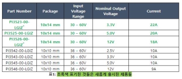 바이코 가 PI3523-00-LGIZ (PI3523)을 출시해 Cool-Power 48V ZVS 20A벅 레귤레이터 제품군을 확대했다. PI352x 제품군은 이전에 출시된 10A 48VIN PI354x제품군을 보완하는 20A 솔루션으로서 48V Direct-to-PoL 애플리케이션에 확장이 가능한 전원 옵션을 제공한다. PI3523은 최대 2..
