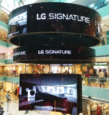 LG전자가 인도 구르가온에 위치한 쇼핑몰인 엠비언스몰(Ambience Mall)에 대형 올레드 사이니지를 설치했다. 인도에 올레드 사이니지가 설치 된 것은 이번이 처음이다. LG전자는 55인치 플렉서블 올레드 사이니지 70장을 활용해 가로 6미터, 높이 5.7미터 크기의 웅장하고 심미적인 사이니지 조형물을 완성했다. 이 올레드 사이니지는 360도 어..