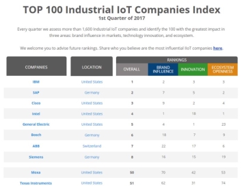 국제 컨설팅 회사 IoTOne이 실시한 온라인 설문 조사 결과, Moxa가 전 세계 50대 산업용 IoT 기업 중 한 곳으로 선정되었다. 이번 결과를 통해 Moxa는 산업용 IoT로 이전하는 추세에서 선도적인 역량을 입증받았을 뿐만 아니라, IP 기반의 네트워킹 기술과 애플리케이션의 지속적인 발전 과정에서 변화를 이끌어낸 노력을 인정받았다. IoTO..