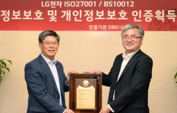 LG전자의 국내 전 사업장이 정보보호인증 국제표준 (ISO27001)을 획득하며 확고한 정보보안 체계를 입증했다. LG전자는 최근 여의도 트윈타워에서 LG전자 이충학 부사장, 국제표준 인증기관 디엔브이 지엘(DNV-GL) 이장섭 본부장이 참석한 정보보호인증(ISO27001) 수여식을 개최했다.