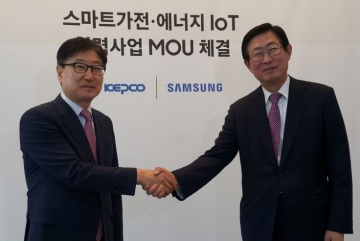 삼성전자와 한국전력공사(KEPCO)는 스마트가전을 활용해 소비자들의 전기요금 부담을 줄이는 에너지 피크 관리 시범사업을 위한 ‘에너지 IoT(Internet of Things, 사물인터넷) 사업 협력 양해각서(MOU)’를 체결한다. 체결식에는 삼성전자 윤부근 대표이사와 한국전력 조환익 사장 등 양사 경영진들이 참석해 정보통신기술과 전력관리 분야 전문..