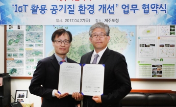 KT는 27일 제주도청 회의실에서 제주특별자치도와 도내 미세먼지와 같은 대기오염 문제를 체계적으로 해결하고, 지역의 효율적인 공기질 관리를 위한 ‘IoT 활용 공기질 환경 개선 협약’을 체결했다고 밝혔다. 제주도 전역에서 미세먼지, 초미세먼지, 소음, 온도, 습도 등 공기 상태를 24시간 내내 실시간으로 수집한다. 측정한 데이터는 지자체에서 웹 관제를..