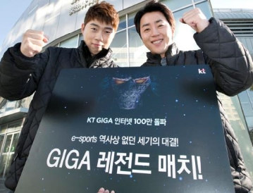 KT(회장 황창규, www.kt.com)는 지난 연말 기가 인터넷 고객 100만 돌파에 이어, 1월 23일 110만 고객 돌파를 기념하며 기가 인터넷을 이용하는 e-스포츠 대회 ‘GiGA 레전드 매치’를 오는 20일 서울 장충체육관에서 개최한다고 밝혔다.