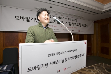 KT가 ‘2014년에 이어 2년 연속으로 중소기업청에서 시행하는 ‘2015년 기업서비스 연구개발사업’ 멘토기관으로 선정되었다. kT는 ‘비즈니스사업화 킥-오프워크숍’을 시작으로 약 3개월에 걸쳐 국내 전문 멘토들의 맞춤형 기술/경영 컨설팅을 총 30개의 우수 벤처기업에 제공할 계획이라고 밝혔다.