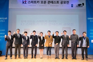 KT(대표 황창규)는 스마트자동차 생태계 활성화를 위한 ‘스마트카 오픈 콘테스트’ 공모전을 개최하고 18일 시상식을 진행했다고 밝혔다. 이번 공모전은 미래창조과학부, 창조경제추진단, 한국정보화진흥원이 추진하는 미래성장동력 플래그십 프로젝트를 통해 선정된 ‘IoT 및 빅데이터 기반 스마트카 생태계 조성’ 과제의 일환이다. KT는 ‘15년 12월 차량 빅데이터..