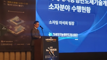 이석희 차세대지능형반도체사업단 소자팀 팀장이 지난 19일 엘타워에서 개최된 ‘2025 뉴로모픽반도체 워크샵’에서 ‘2025 차세대지능형반도체기술개발사업 소자분야 수행현황’을 발표하며, “연구진들은 2029년까지 프로토타입을 구현하여 1 테라플롭스의 연산 성능을 갖춘 차..