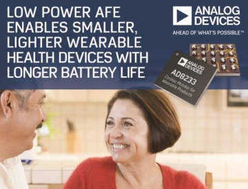 아나로그디바이스(한국 대표이사 양재훈)는 보다 작고 가벼우며 도드라져 보이지 않는 심전도 모니터링 장치를 구현할 수 있도록 하는 향상된 배터리 수명의 저전력?차세대 생체 전위(biopotential) 아날로그 프런트 엔드(AFE, analog front end)를 발표..