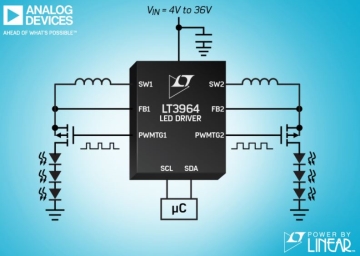 아나로그디바이스는 40V, 1.6A 전원 스위치와 I2C 인터페이스를 내장하여 LED 디밍 제어를 간소화 하는 듀얼 채널 36V 고효율 동기식 스텝다운 LED 드라이버 LT3964를 출시했다고 밝혔다. LT3964는 4V ~ 36V까지 입력 전압 범위가 넓고 최..