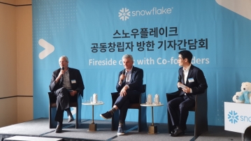 스노우플레이크(Snowflake)의 공동창립자인 베누아 다쥬빌(Benoit Dageville) 제품 부문 사장과 티에리 크루아네스(Thierry Cruanes) 전 최고기술책임자가 최기영 한국지사장이 함께 진행한 기자 간담회에서 스노우플레이크는 AI 기술을 통합해 복잡..