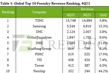 생산량에 비해 높은 수요와 평균판매가 상승으로 세계 상위 10개 파운드리의 2021년 4분기 실적이 전분기 대비 8.3% 증가한 295억5,000만달러를 기록했다.