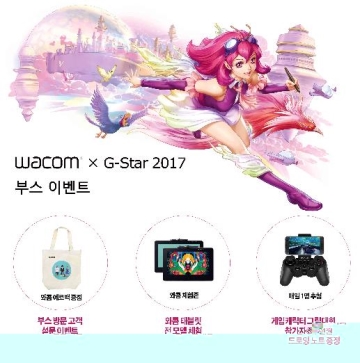 와콤은 오는 16일부터 19일까지 부산 벡스코에서 진행되는 ‘지스타(G-Star) 2017’에 참가해 와콤 태블릿 전 모델을 자유롭게 체험할 수 있는 와콤 부스를 운영하고, 방문고객 이벤트 및 게임캐릭터 그림대회 등을 실시한다. 올해 13회째를 맞이한 지스타 행사..