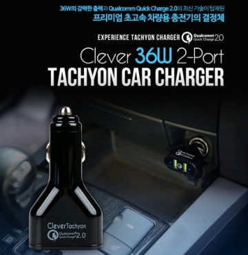 IT주변기기 수입 유통회사 바이퍼럭스가 미국 Qualcomm사의 Quick Charge2.0 고속충전기술이 탑재된 프리미엄 차량용 충전기 Clever 32W 2-Port Tachyon Car Charger를 정식 출시하고 이를 기념해 16일부터 다양한 이벤트를 진행한다..