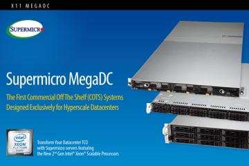 슈퍼마이크로가 최초의 하이퍼스케일 데이터센터 전용 상용제품(COTS)으로 새로운 메가DC(MegaDC) 서버 제품군을 출시했다. 사용자가 기능 및 버전을 제어할 수 있는 OpenBMC, OCP V3.0 SFF 카드를 지원하는 AIOM 등 개방형 표준과 CRPS로 유연성..