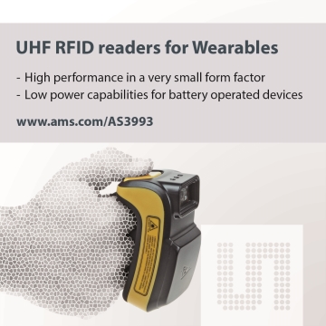 ams는 영국기업인 테크놀로지 솔루션스(TSL: Technology Solutions Limited) 가 웨어러블형태의 RFID 스캐너신제품 1153에 ams의 고집적, 저전력리더기 IC(제품명: AS3993)를 탑재했다고 발표했다. 테크놀로지솔루션스 “매우 낮은 소..