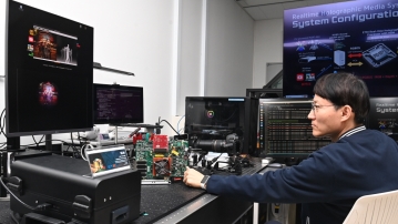 한국전자통신연구원(ETRI)이 실시간 2D 동영상을 3D 풀컬러 홀로그램으로 변환 가능한 FPGA 기반의 디지털 홀로그래피 미디어 프로세서(RHP)를 개발하며, 향후 홀로그래피 기술의 핵심이 될 것으로 기대가 모아진다.