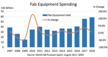 ?SEMI 가 최근 발표한 세계 팹 전망 보고서에 따르면, 2017년 반도체 팹 장비에 기록적인 투자가 있을 것이라고 전망했다. SEMI가 추적 조사한 296개 전공정(Front End) 설비 및 라인 가운데 30개 설비 및 라인이 팹 장비에 5억 달러 이상 지..