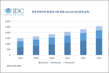 2019년 국내 빅데이터 및 분석 시장이 전년 대비 10.9% 증가한 1조 6,744억 원을 기록했다. 한국IDC가 최근 발간한 ‘국내 빅데이터 및 분석 2019-2023 시장 전망’ 연구 보고서에 따르면 국내 빅데이터 및 분석 시장은 2023년까지 연평균 11.2%..