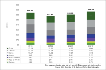 2019년 전 세계 반도체 장비 매출액이 역대 최고치였던 2018년 644억 달러에서 약 10.5% 하락한 576억 달러를 기록했다. 2020년 반도체 장비 매출액은 올해 대비 약 5.5 % 증가한 608억 달러를 달성 후, 2021년에는 668억 달러로 최고치를 기록..