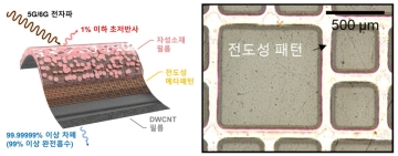 한국재료연구원(KIMS, 원장 최철진) 융·복합재료연구본부 박병진, 이상복 박사 연구팀이 하나의 소재로 다양한 주파수 대역의 통신 전자파(5G/6G, WiFi, 자율주행 레이더 등)를 동시에 99% 이상 흡수할 수 있는 극박 필름 형태의 복합소재 기술을 세계 최초로 개..