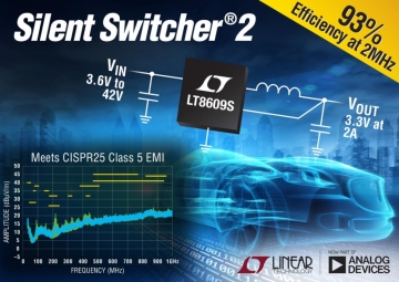 아나로그 디바이스는 2A(3A 피크), 42V 입력의 동기식 스텝다운 스위칭 레귤레이터 신제품 LT8609S를 출시했다고 밝혔다. 이 제품은 고유의 사일런트 스위처 2(Silent Switcher® 2) 아키텍처를 채택하고 있는데, 2개의 내부 입력 커패시터와 ..