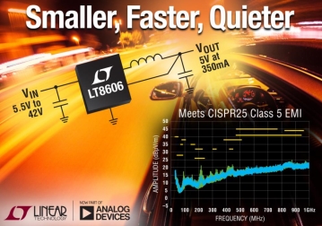아나로그 디바이스는 350mA, 42V 입력의 동기식 스텝다운 스위칭 레귤레이터 신제품 LT8606을 출시했다. 신제품의 독창적인 동기식 정류 토폴로지는 2MHz의 스위칭 주파수에서 92%의 변환 효율을 제공할 뿐 아니라, 설계자가 매우 컴팩트한 풋프린트의 솔루..