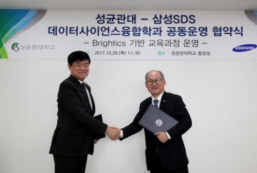 삼성SDS와 성균관대학교가 손잡고 4차 산업혁명시대의 핵심 인재인 빅데이터 분석 전문가 양성에 적극 나선다. 삼성SDS 정유성 대표이사와 성균관대학교 정규상 총장 등이 참석한 가운데 10월 26일 성균관대학교 총장실에서 빅데이터 분석 기술 활성화와 공동 연구 등..