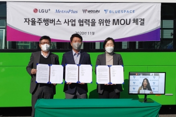 LG유플러스가 블루스페이스, 우진산전, 메트로플러스 등 국내외 전문업체들과 손잡고 ‘자율주행버스’ 사업에 본격 나선다. 4개 사는 우진산전 충북 오창 공장에서 이 같은 내용의 사업 협력을 위한 양해각서(MOU)를 체결하고, 실무협의단 구성·운영 등 세부적인 방안을 마련..