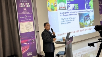 김현수 성균관대학교 명예교수는 한국자동차연구원(이하 한자연)이 15일 코엑스 스타트업 브랜치에서 하이브리드의 기술을 포함한 최신 동향과 전망을 주제로 개최한 제6회 자산어보 행사에서 전기차 산업에서의 재생에너지 사용을 강조했다.