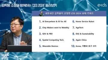 김학용 소장과 e4ds news는 지난 25일 ‘김학용 소장과 함께하는 CES 2024 둘러보기’ 웨비나를 진행하며 CES 2024에서 주목할 만한 트렌드를 살펴보았다.
