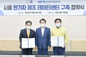 KETI와 시흥시가 전기차 제조 데이터 센터 구축과 운영에 대한 업무협약을 체결했다. 이번 협약을 통해 양 기관은 전기차 운행 중에 생성되는 주행 데이터와 부품 데이터를 융합하여 전기차 부품의 생산, 관리, 운행 등에 활용 가능한 빅데이터 플랫폼을 올해부터 2023년까..