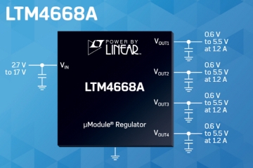 ADI가 최대 4.8A의 출력 성능을 지원하는 쿼드 출력 DC/DC 레귤레이터 신제품 LTM4668과 LTM4668A 모듈을 출시했다. 스위칭 컨트롤러, 파워FET, 인덕터 등과 다른 지원 소자들을 통합함으로써 설계 작업의 효율성을 높이는 동시에 보드 면적을 줄여 텔레..
