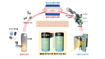 UNIST(총장 이용훈) 에너지화학공학과 안광진 교수팀이 마스크 폐기물로부터 탄소나노튜브를 생산하고, 리튬이온 배터리의 양극 도전재로 적용하는 공정을 개발해 향후 폐플라스틱 재활용으로 환경을 보호하고 첨단 산업에 사용될 수 있는 핵심적인 기술로 발전할 것으로 기대된다...