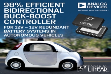 아나로그디바이스가 자율주행차의 리던던트 배터리용으로 최적화된 98% 효율의 양방향 벅-부스트 스위칭 레귤레이터 컨트롤러 신제품 LT8708과 LT8708-1을 출시했다. 이들 제품은 입력 전압이, 출력 전압과 동일하거나 또는 출력보다 높거나 낮을 경우에도 동작이 가능해..