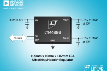 아나로그디바이스가 듀얼 10A 또는 싱글 20A 초박형 스텝다운 µModule 레귤레이터 신제품 Power by Linear LTM4686을 출시했다. LTM4686은 랙 마운트형 텔레콤 스위치와 라우터, RAID 시스템, 시험 및 계측 장비 같이 높이의 제약이 있는 ..