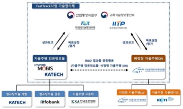 산업부와 과기부가 자율주행 산업 분야의 속도를 내기위해 "Fast Track 기술협의체"를 구성한다. 신속한 추진을 필요로하는 R&D 사업에 대해 예비타당성조사 이전에 시범사업을 4개 부처별로 추진하며, 4개 부처중 산업통상자원부와 과학기술정보통신부 두개 부처가 협업하..