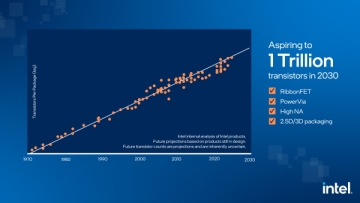 인텔이 패키징 기술에서 집적도 10배를 목표로 설정하고, 트랜지스터 집적을 위해 원자 3개 두께의 초박형 신규 물질 사용을 제시하는 등 무어의 법칙을 지속하기 위한 혁신을 지속했다.