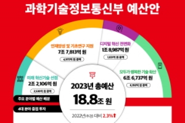 과학기술정보통신부(장관 이종호)가 2023년 총예산을 올해보다 13% 증액하고, 기술패권경쟁 시대 초격차 전략기술 확보와 국가 디지털 혁신에 집중한다.