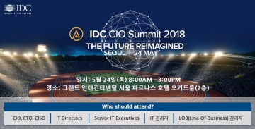 인터내셔날데이터코퍼레이션코리아 (IDC) 는 오는 24일 그랜드 인터컨티넨탈 서울 파르나스 호텔 오키드룸에서 ‘CIO 서밋(Summit) 2018’ 컨퍼런스를 개최한다고 밝혔다. 매년 아시아 태평양 지역 12개 도시에서 로드쇼 형식으로 진행되는 ‘IDC CIO 서밋’ ..