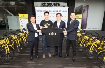 KT는 ofo, 신한카드, NHN KCP와 ‘한국형 공유자전거 서비스 상용화를 위한 업무협약’을 체결한다고 밝혔다. KT 김준근 GiGA IoT 사업단장, ofo Yanqi Zhang(엔치 장) 공동창업자 겸 COO, 신한카드 이찬홍 플랫폼사업그룹장, NHN K..