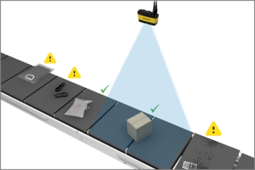 코그넥스의 D-A1000 물품 감지 시스템은 생산 라인 속도로 움직이는 다양한 물품 분류기에서 높은 정확도로 물체의 유무를 식별한다. 그 후에는 내장된 처리 기술이 코그넥스 비전 툴을 이용해 트레이와 물체에 대한 상세 검사를 제공한다.