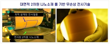 과학기술정보통신부 산하 한국기계연구원(원장 박상진)이 원자층 두께의 2차원 나노소재를 웨이퍼 사이즈로 손상없이 전사할 수 있는 ‘대면적 2차원 나노소재 무손상 롤 전사기술’을 개발했다. 투명 디스플레이와 투명 반도체, 자율주행 자동차를 위한 디스플레이까지 다양한 분야에..